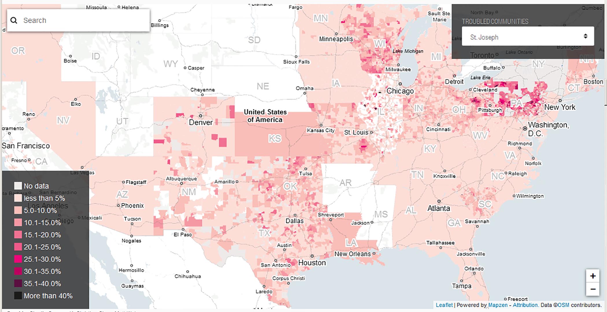 Data by census tract: CO, IN, MA, MD, MN, MO, NY, WI, PA, OH